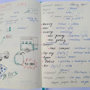 Here's my old Moleskine notebook from 2019 with my Indonesian basics:
